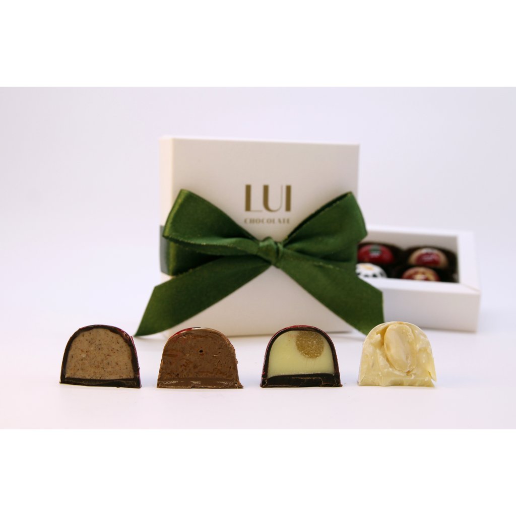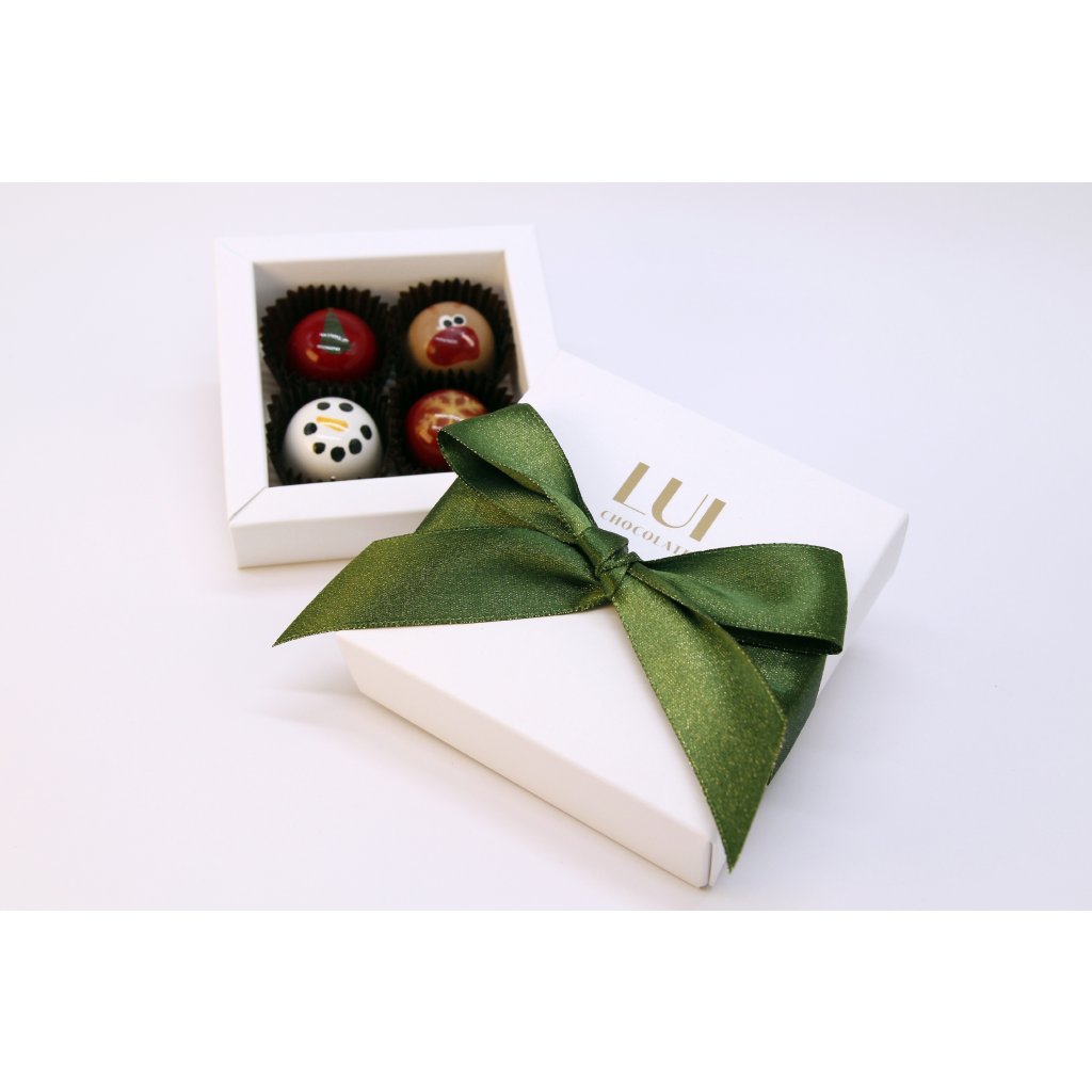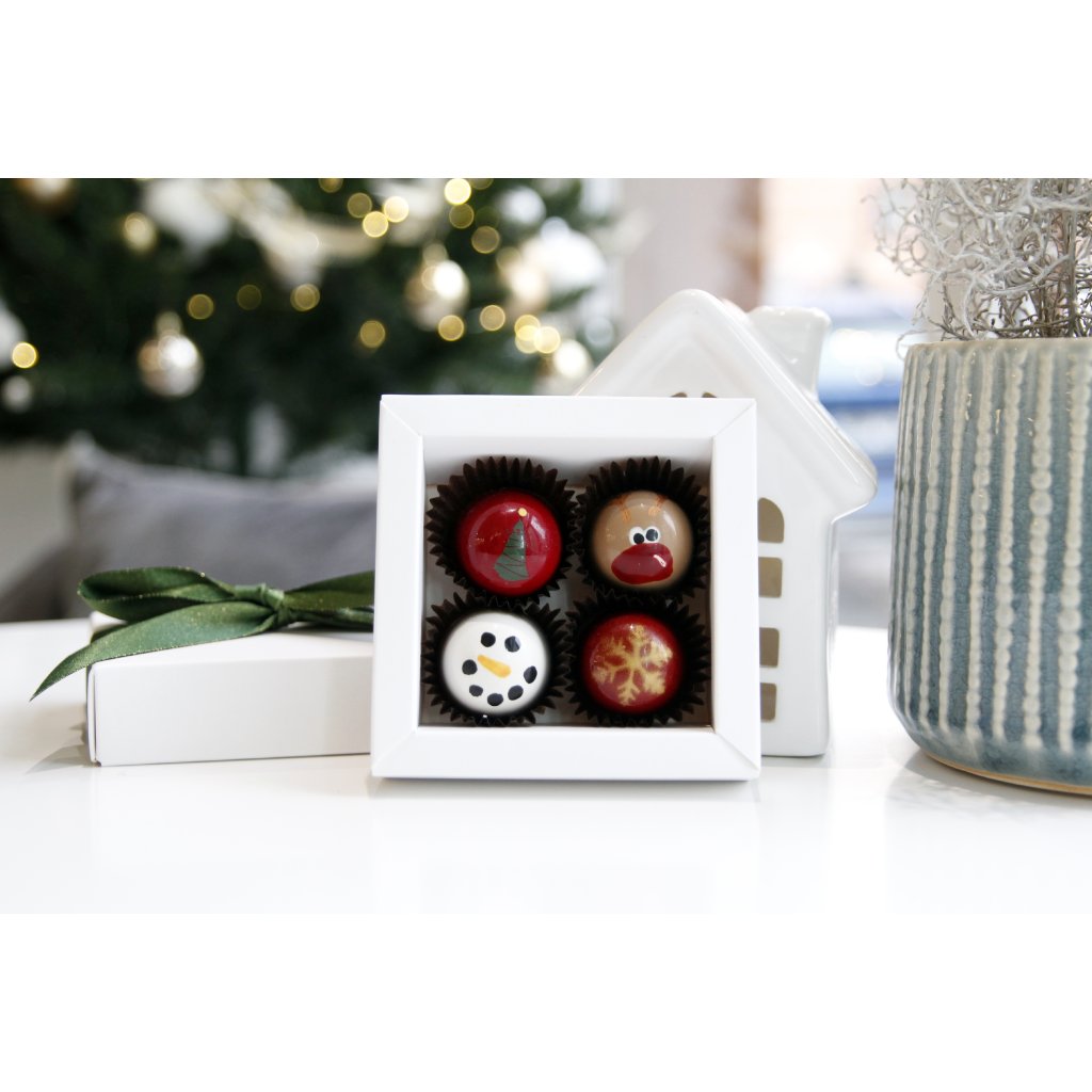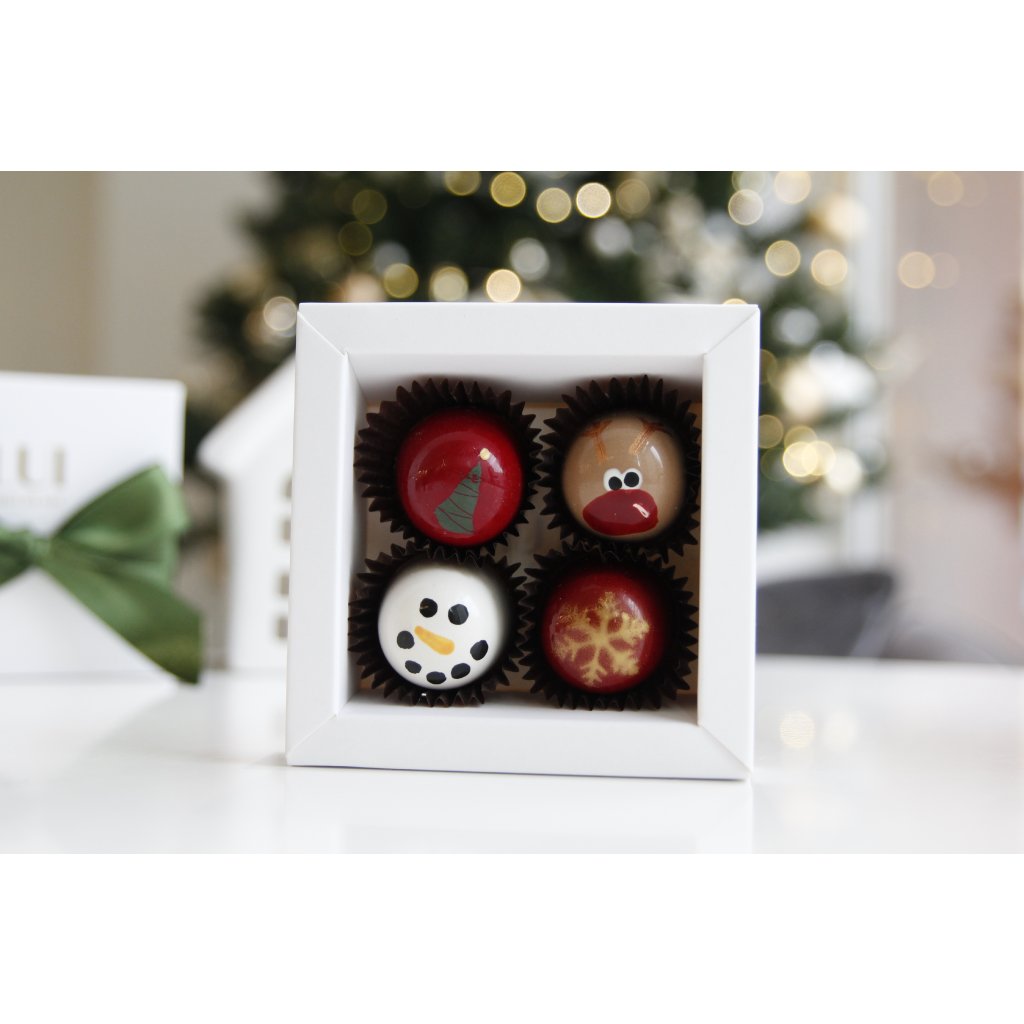 Tahle čtyřka je čistá vánoční radost v malém balení. Najdeš v ní 4 ručně vyráběné pralinky s hravými motivy – sněhulák, sobík, zlatá vločka a vánoční stromeček. Každá pralinka má svou zimní chuť a dohromady tvoří krásný mini dárek, který potěší kohokoliv.