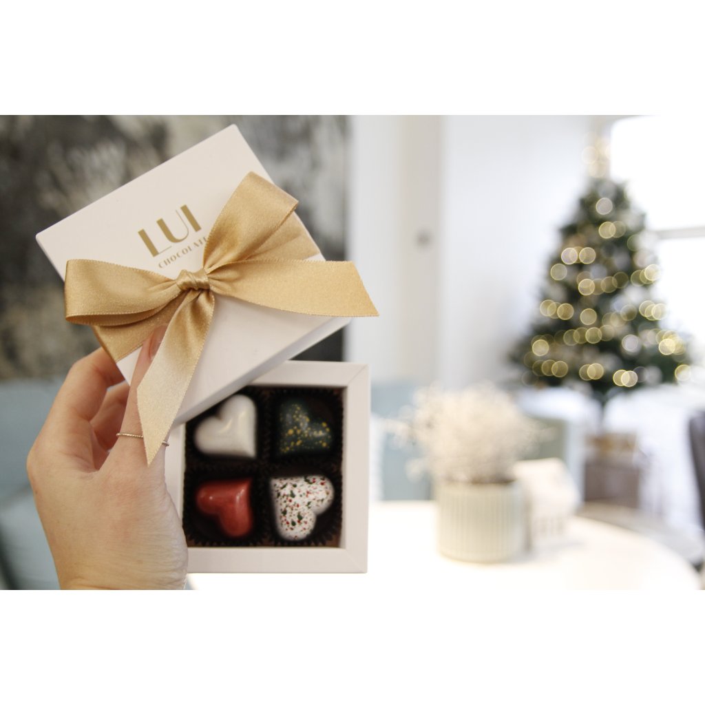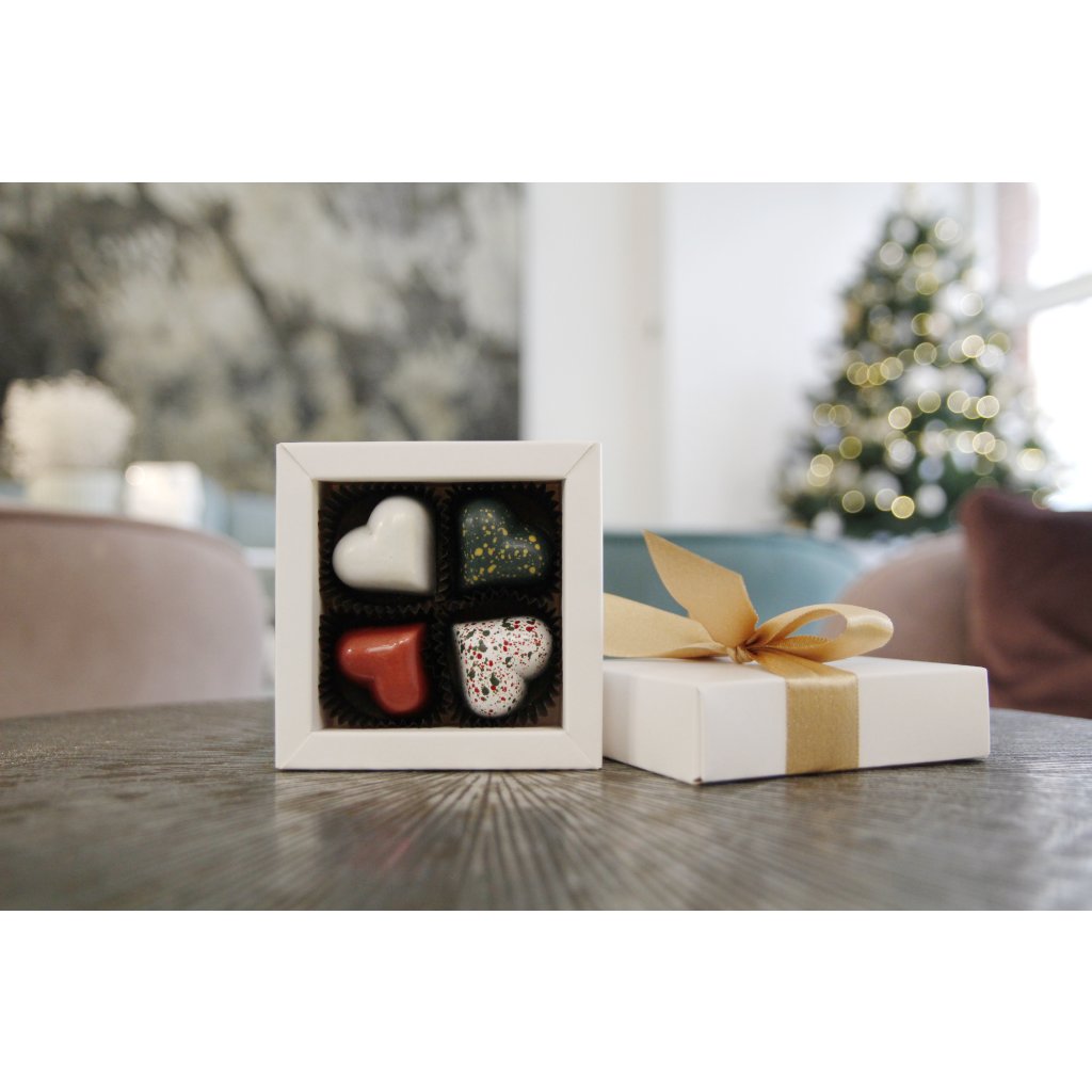 MiniBox „Zamilovaná edice“ je elegantní sada čtyř pralinek ve tvaru srdcí — ideální jako malá pozornost pro někoho, koho máš rád. Mix chutí je sladký, hřejivý a lehce hravý: